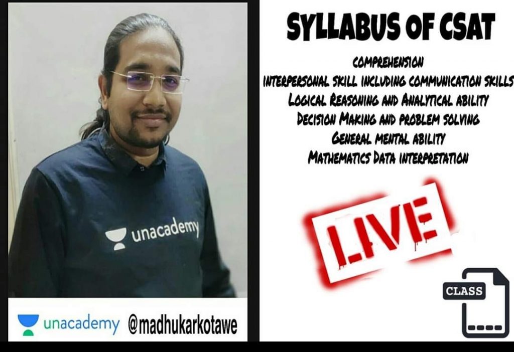- Compreshension for CSAT – https://unacademy.com/plus/course/revision-course-on-comprehension-for-csat-2019/ONLEFV3C