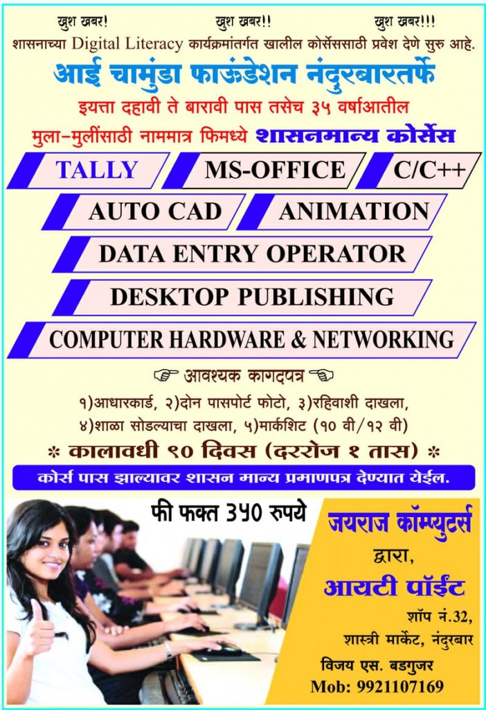 अधिक माहितीसाठी संपर्क – विजय बडगुजर – ९९२११०७१६९.