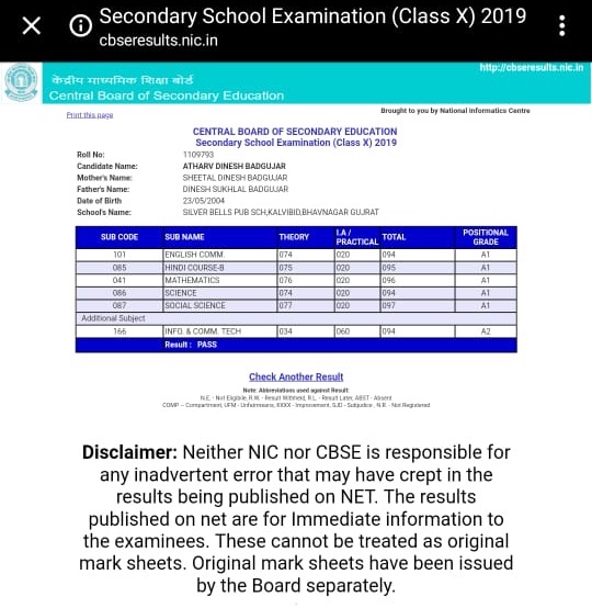 श्री.दिनेश सुखलाल बडगुजर रा.डोंबीवली, ह.मु.भावनगर, गुजरात. यांचे चिरंजीव कु.अथर्व दिनेश बडगुजर याने इ.१० वी (CBSE ) या वर्षीच्या शालांत परिक्षेत ९५% गुण मिळवुन यश प्राप्त केले.