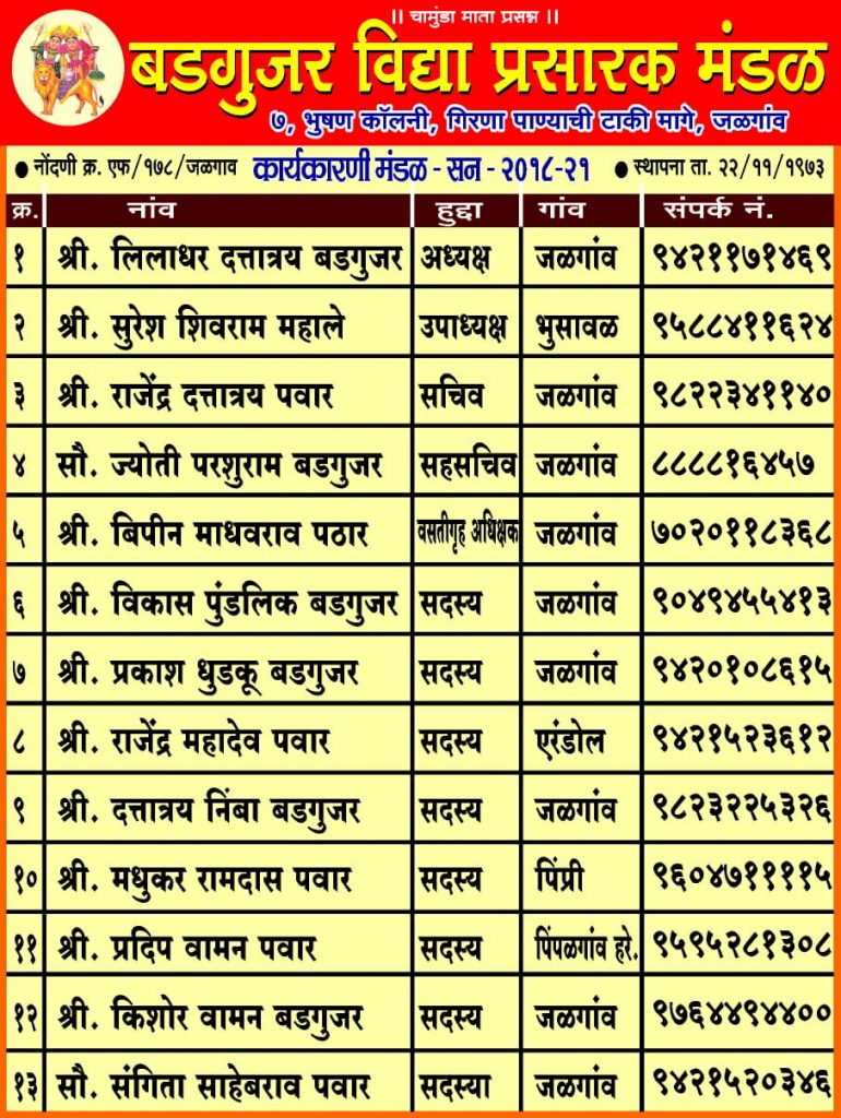 बडगुजर विद्या प्रसारक मंडळ, जळगांव – नोंंदणी क्र. एफ/१७८/जळगांव June 17, 2019 Lokesh समाज मंडळ 0 Share this:WhatsApp