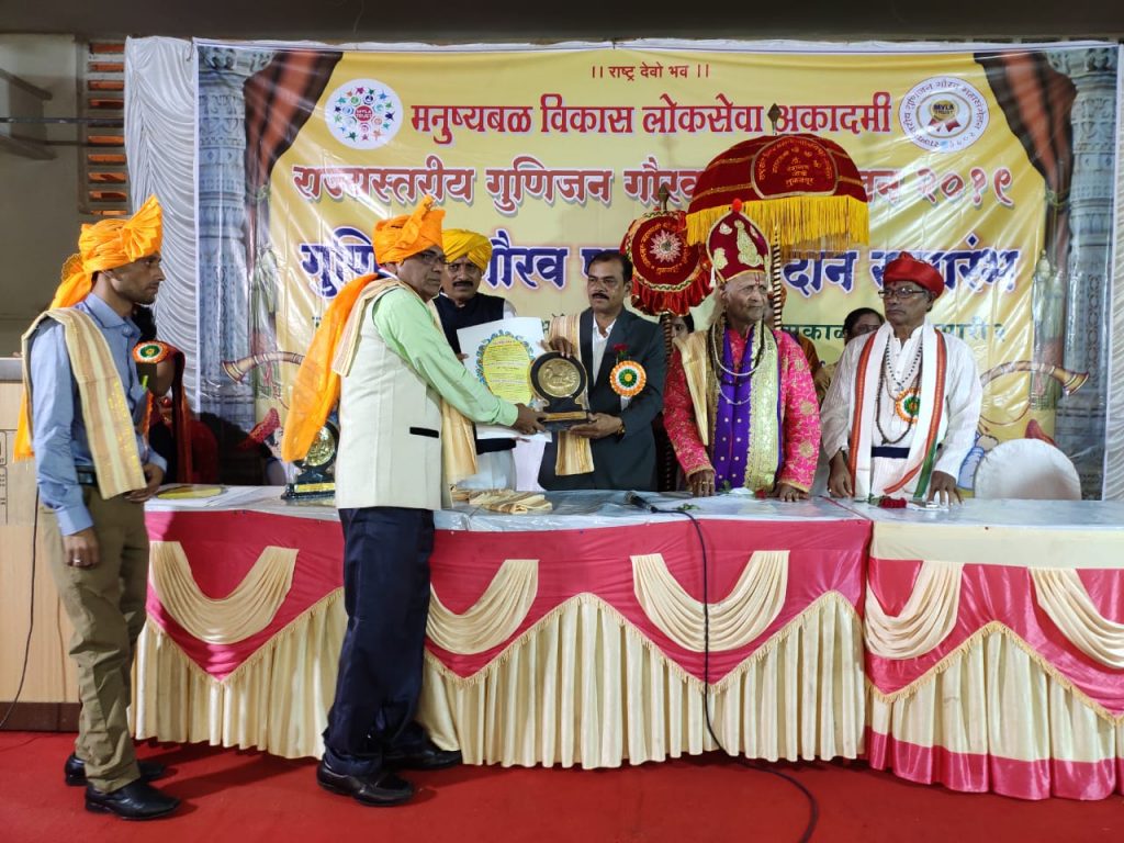 १३) २०१९ राज्य स्तरीय गुनीजन कलारत्न पुरस्कार, मनुष्यबळ विकास लोकसेवा अकादमी (मुंबई)