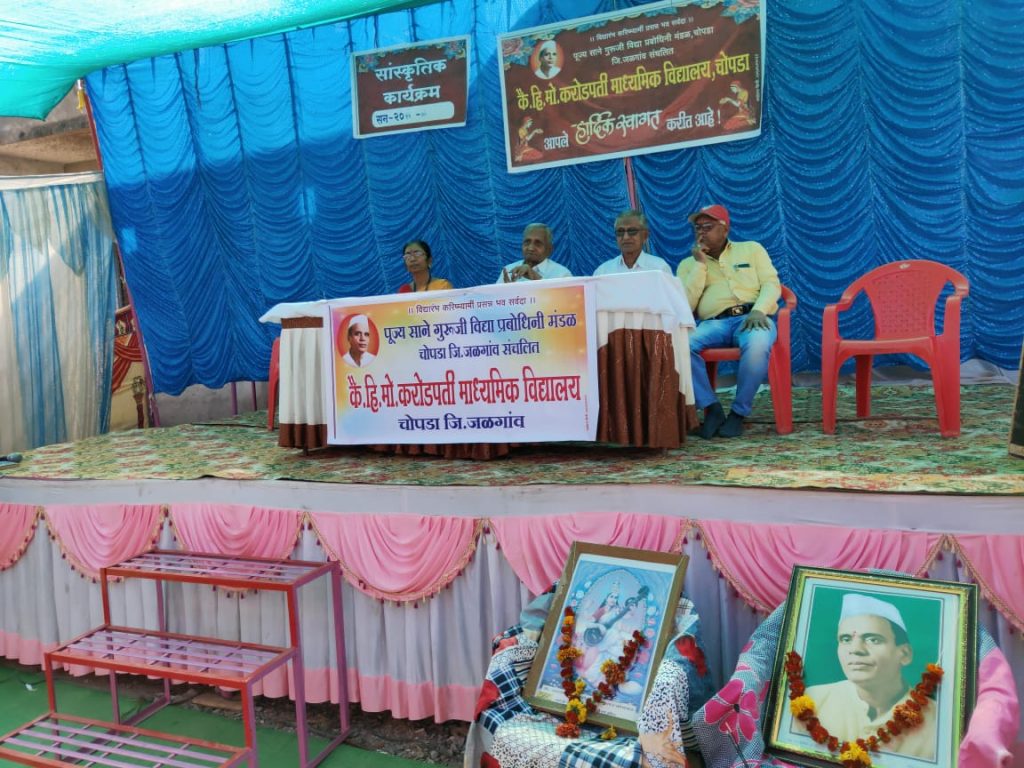 चोपडा येथील पूज्य साने गुरुजी विद्या प्रबोधिनी मंडळ,चोपडा संचलित, कै. हि.मो.करोडपती, माध्यमिक विद्यालय, चोपडा जि.जळगांव, सांस्कृतिक कार्यक्रम शुक्रवार दिनांक १७-१- २०२० रोजी उत्साहात संपन्न झाला.