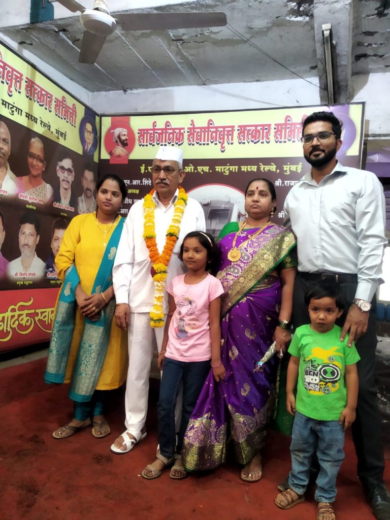 यशस्वी आणि जबाबदारी पुर्ण सेवा पुर्ती बद्दल माटुंगा रेल्वे वर्कशॉप तर्फे त्यांचा सत्कार करण्यात आला. तसेच त्यांना पुढील आयुष्यासाठी शुभेच्छा देण्यात आल्या.