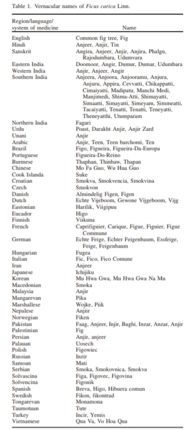 वेगवेगळ्या देशात अंजीराची नावे