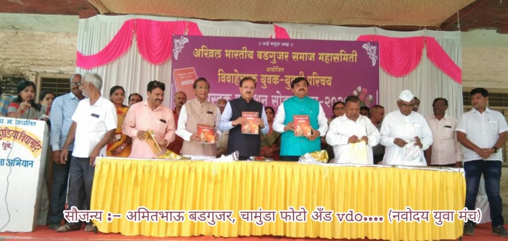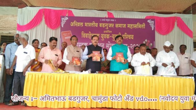 अखिल भारतीय बडगुजर समाज महासमिती अंतर्गत वधु-वर परिचय समितीतर्फे विवाहेच्छुक युवक-युवती परिचय पुस्तिका प्रकाशन सोहळा धुळे येथील गिंदोडिया विद्यालयात पार पडला. यावेळी ६०८ वधू-वरांच्या परिचयपत्र झाला. अखिल भारतीय बडगुजर समाज महासमितीचे अध्यक्ष माधवराव बडगुजर यांच्या हस्ते उद्घाटन झाले. खासदार डॉ.सुभाष भामरे यांच्या हस्ते पुस्तक प्रकाशन झाले. अखिल भारतीय बडगुजर समाज युवक-युवती परिचय पुस्तिका प्रकाशन सोहळा समितीचे प्रमुख सुधीर बडगुजर, आनंदा सूर्यवंशी, उमेश करोडपती, महिला बालकल्याण सभापती स्नेहल जाधव, नथू बडगुजर, नंदुरबारचे नगरसेवक दिलीप बडगुजर, पारोळ्याच्या नगरसेविका जयश्री बडगुजर, अखिल भारतीय बडगुजर समाज महासंघाचे उपाध्यक्ष भगवान बडगुजर, सचिव राजेंद्र बडगुजर, सहसचिव अविनाश बडगुजर, महिला समिती प्रमुख रत्नाताई बडगुजर, प्रा.एच.आर.बडगुजर, अशोक बडगुजर आदी उपस्थित होते. यावेळी खा. सुभाष भामरे बडगुजर समाज विविध कार्यक्रमांच्या माध्यमातून समाज प्रबोधनाचे कार्य करीत असतो. अशा कार्यक्रमांच्या व्यासपीठाच्या माध्यमातून समाज एकत्रिकरणाचे काम आपल्या समाजातर्फे होत असते. धुळे जिल्ह्यातील बडगुजर समाजाशी माझे स्नेहाचे संबंध आहेत, असेही त्यांनी यावेळी सांगितले. अखिल भारतीय बडगुजर समाज महासमिती अध्यक्ष माधवराव बडगुजर यांनी महिलांना संबोेधितांना सांगितले, की आज समाजात मुलींची संख्या कमी होत चालली आहे. त्यामुळे स्त्रीभ्रूणहत्या सारख्या आपल्या समाजात होणार नाहीत, याविषयी महिलांनी जागृत रहावे. तसेच वधूपिता लग्न जमविताना शहरी भागाकडे आकर्षित होत असतो. परंतु ही परिस्थिती पूर्ण सत्य नसून शहरांपेक्षा ग्रामीण भागातील शेतकरी तरुणही आपल्या बायकोला सुखी ठेवू शकतो, हे प्रत्येकाने लक्षात घेणे गरजेचे आहे. भूतकाळातील चुका दुरुस्त करीत भविष्यात आगळे-वेगळे कार्यक्रम करण्याचे आश्वासनही त्यांनी यावेळी दिले.