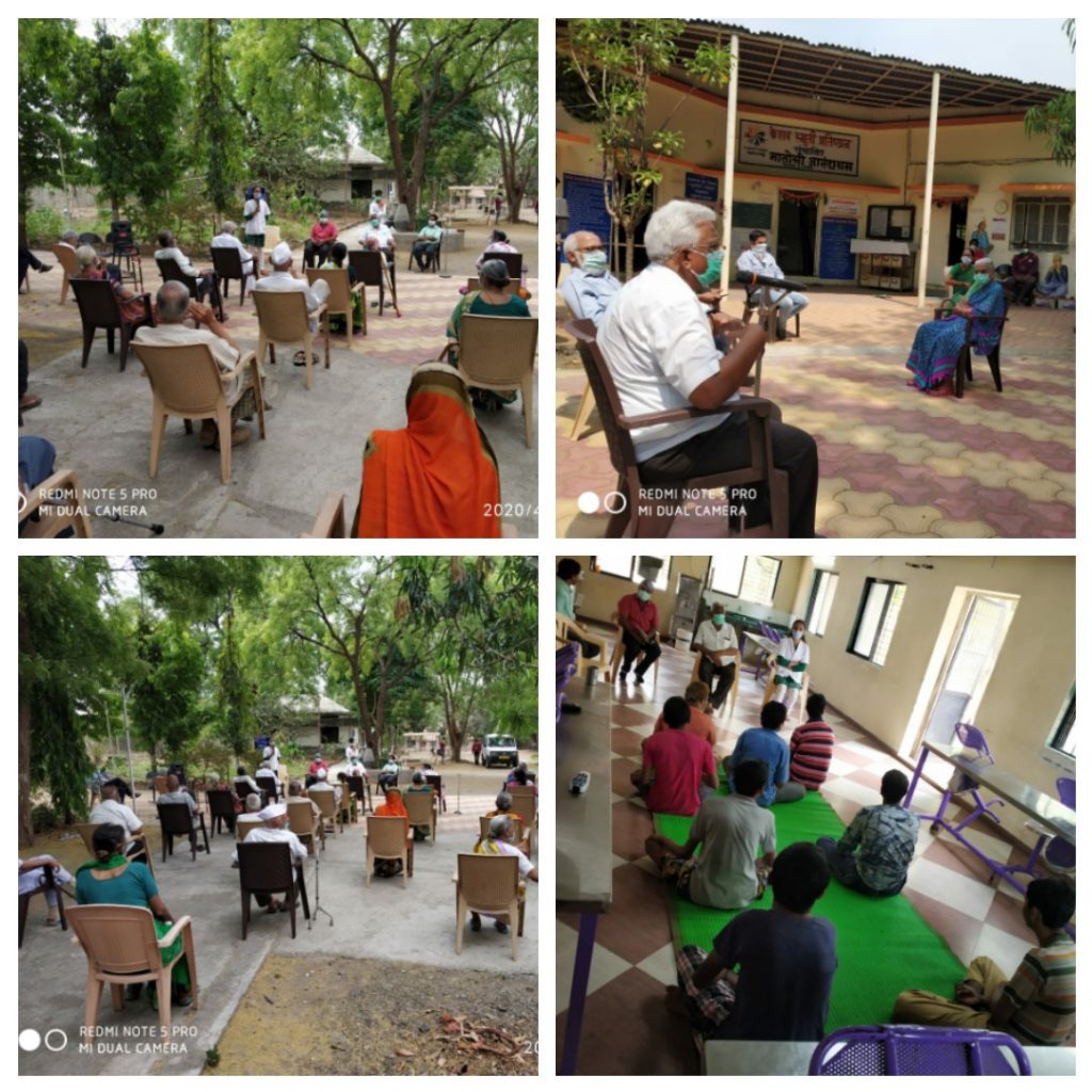 आज दि. 18 एप्रिल रोजी जिल्हा समुपदेशन पथक सिव्हिल हॉस्पिटल जळगाव च्या वतीने ज्येष्ठ मनोविकारतज्ञ तथा वैद्यकीय अधिकारी डॉ. श्री. एस. जी. बडगुजर, डॉ. लीना बडगुजर, सायकॉलॉजिस्ट श्री.दौलत निमसे, श्री. चंद्रकांत ठाकूर श्री,सतीश चांगरे यांनी मातोश्री वृद्धाश्रम/ आनंदाश्रम सावखेडा ता.जि.जळगाव येथे भेट दिली.या भेटीचा मुख्य विषय ‘कोविड -19’ या कोरोना विषाणूमुळे होणाऱ्या रोगाविषयी जनजागृती आणि प्रतिबंधात्मक उपाय हा होता. डॉ. बडगुजर सरांनी ‘कोविड -19’ या कोरोना विषाणूमुळे होणाऱ्या रोगाविषयी जनजागृती आणि प्रतिबंधात्मक उपाययोजना ह्या विषयी सविस्तर मार्गदर्शन केले.