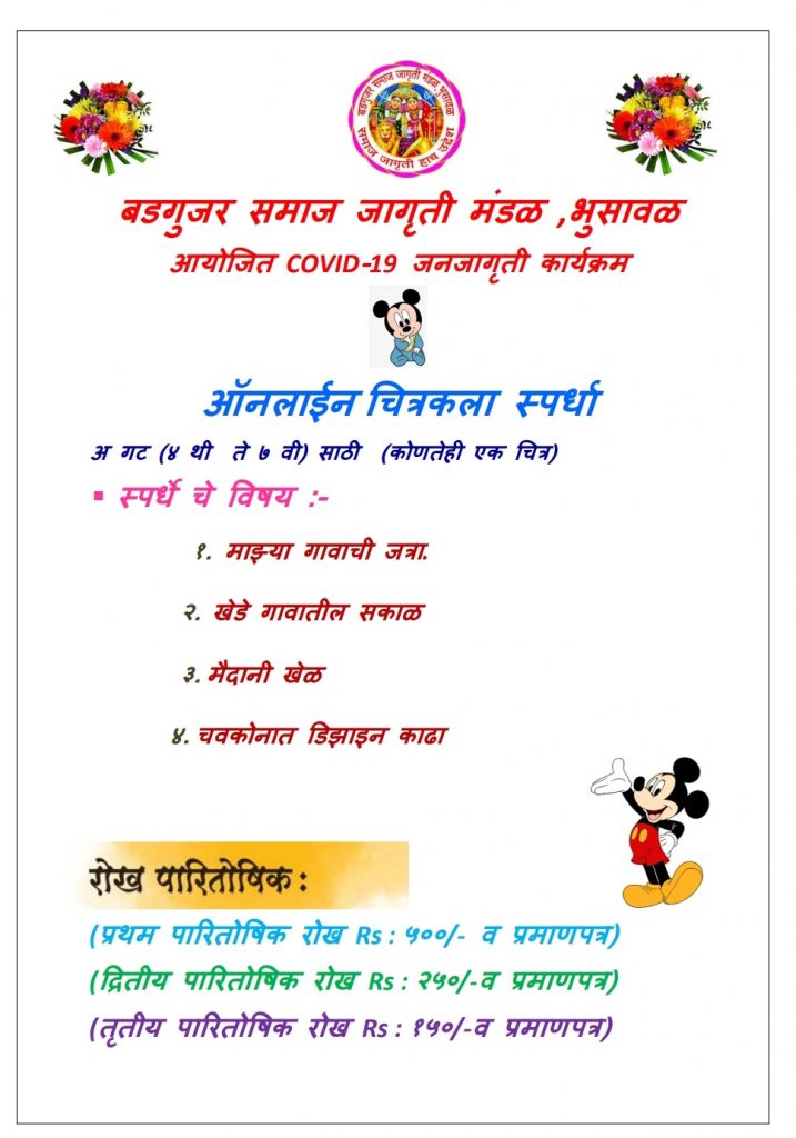 आपल्या समाजातील बालमित्रांनकरीता मनोरंजनात्मक चित्रकला स्पर्धेचे आयोजन केल्या बद्दल बडगुजर समाज जागृती मंडळ,भुसावलचे हार्दिक अभिनंदन..!
