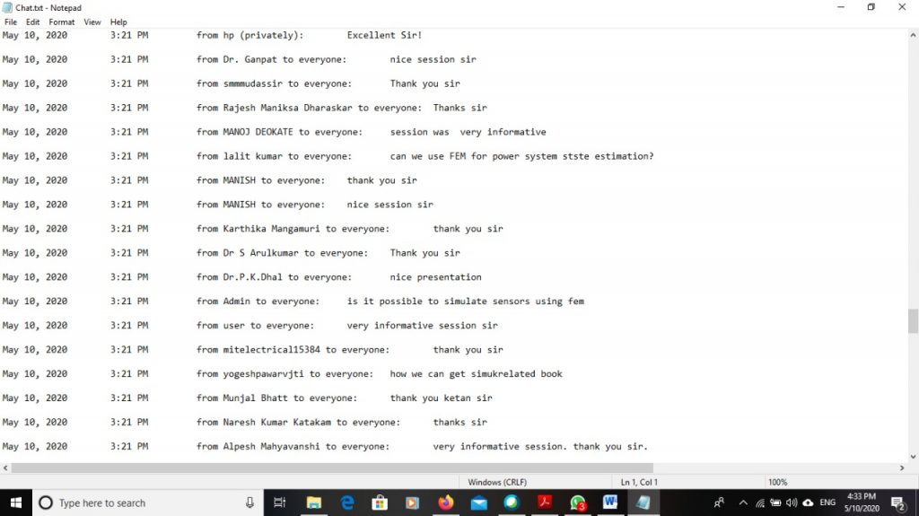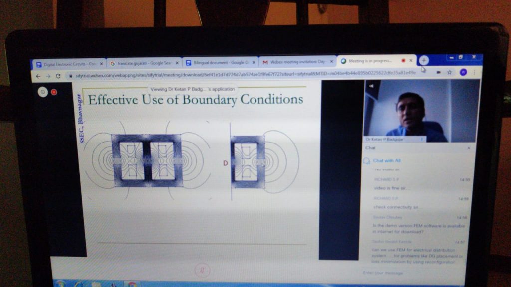 शासकीय अभियांत्रिकी महाविद्यालय, कराड यांनी विद्युत अभियांत्रिकी विभागातर्फे ७ मे ते १६ मे, २०२० दरम्यान “इलेक्ट्रिकल इंजिनिअरिंगमधील संशोधन संधी” विषयावर ऑनलाईन फॅकल्टी डेव्हलपमेंट प्रोग्राम आयोजित केला आहे. यामध्ये नामांकित प्राध्यापक नोंदणीकृत सहभागींना तज्ञांची सत्रे देणार आहेत. प्राध्यापक, संशोधन अभ्यासक आणि पीजी विद्यार्थ्यांचा समावेश आहे. कार्यक्रमात 600 हून अधिक सहभागींची उपस्थिती आहे. 50 पेक्षा जास्त डॉक्टरेट प्राध्यापक प्रशिक्षण घेत आहेत. या कार्यक्रमासाठी प्रा. केतन बडगुजर, यांना आमंत्रित करण्यात आले होते. प्रा. केतन बडगुजर हे भावनगर येथील शांतीलाल शाह गव्हर्मेंट इंजिनिअरिंग कॉलेज मध्ये प्राध्यापक म्हणून कार्यरत आहेत. प्रा. केतन यांनी फिनिट एलिमेंट मेथड अँड ओपन सोर्स सॉफ्टवेयर या विषयावर मार्गदर्शन केले. सत्र सिस्को वेबएक्स प्लॅटफॉर्मवर अनुसूचित करण्यात आले होते. अधिवेशन घेतल्यामुळे सहभागींना आनंद झाला आणि प्रश्न व उत्तरांद्वारे ते संवादात्मक झाले. अधिवेशनाचा दुसरा भाग उद्या दुपारी अडीच वाजता घेण्यात येईल. कोरोनाच्या कठीण काळात, ऑनलाइन शिकवणीच्या उपक्रम शिकवण्यासाठी ऑनलाइन व्यासपीठाचा उपयोग करणे ही आता शिक्षण प्रणालीचा अविभाज्य भाग बनला आहे.