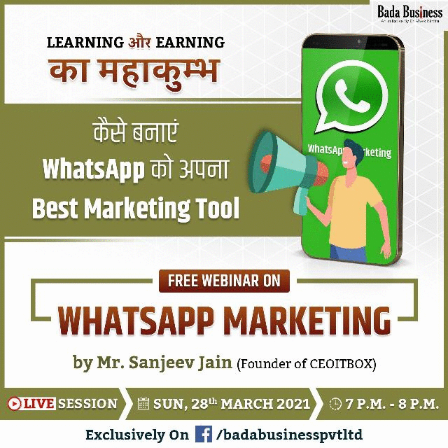 Free WhatsApp Marketing Webinar by Sanjeev Jain March 26, 2021 avinash नोकरी विषयक (Jobs) 0 Share this:WhatsApp