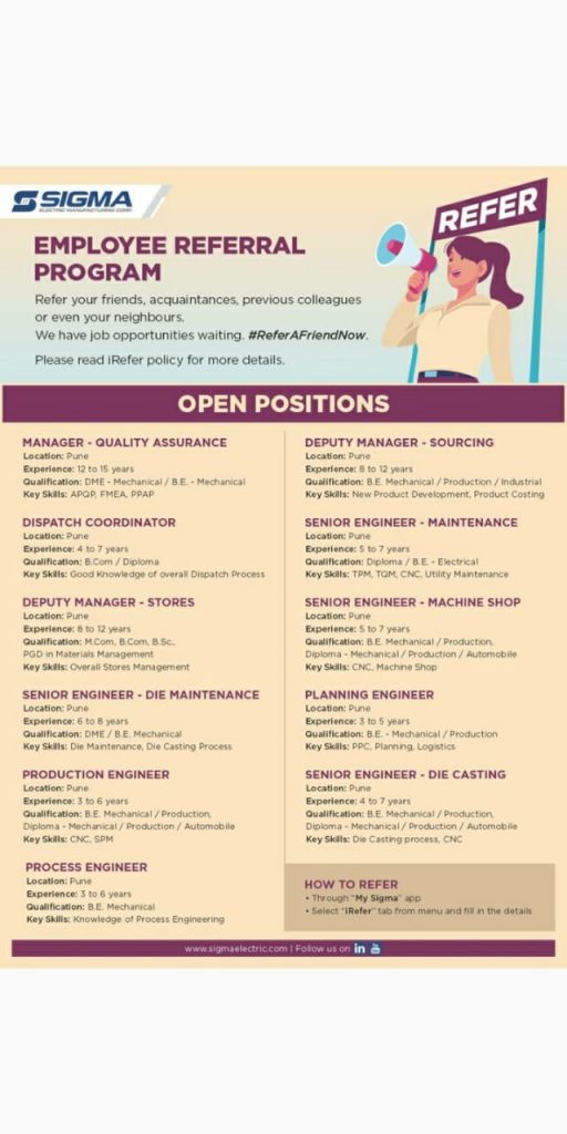 Sigma Electric, Pune hiring May 27, 2021 avinash नोकरी विषयक (Jobs), महत्वाचे (Important) 0 Contact: Anup Badgujar anup.badgujar18@gmail.com Share this:WhatsApp