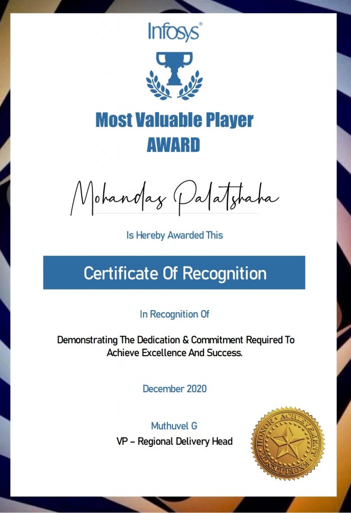 आता सध्या ते इन्फोसिस या कंपनीत डेटा सायंटिस्ट या पदावर कार्यरत आहेत. त्यांना इन्फोसिस कंपनीकडून २०२० चा ग्लोबल लेव्हलचा “मोस्ट व्हॅल्यूयबल प्लेअर” हा पुरस्कार जानेवारी २०२१ ला मिळाला. तसेच त्यांचे मोठे बंधू प्रा विक्रांत देविदास पालटशा यांना ही सावित्रीबाई फुले पुणे विद्यापीठाचा “बेस्ट काॅलेज कोड्रीनेटर”