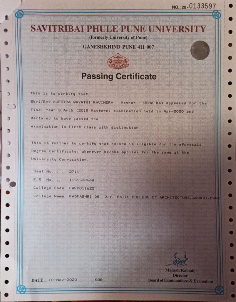 शिरपूर येथील सौ. गायत्री भुषण बडगुजर ही B. Arch. च्या पहिला वर्ग विशेष प्राविण्यासह उर्तीर्ण – श्री. रविंद्र बडगुजर, चोपडा