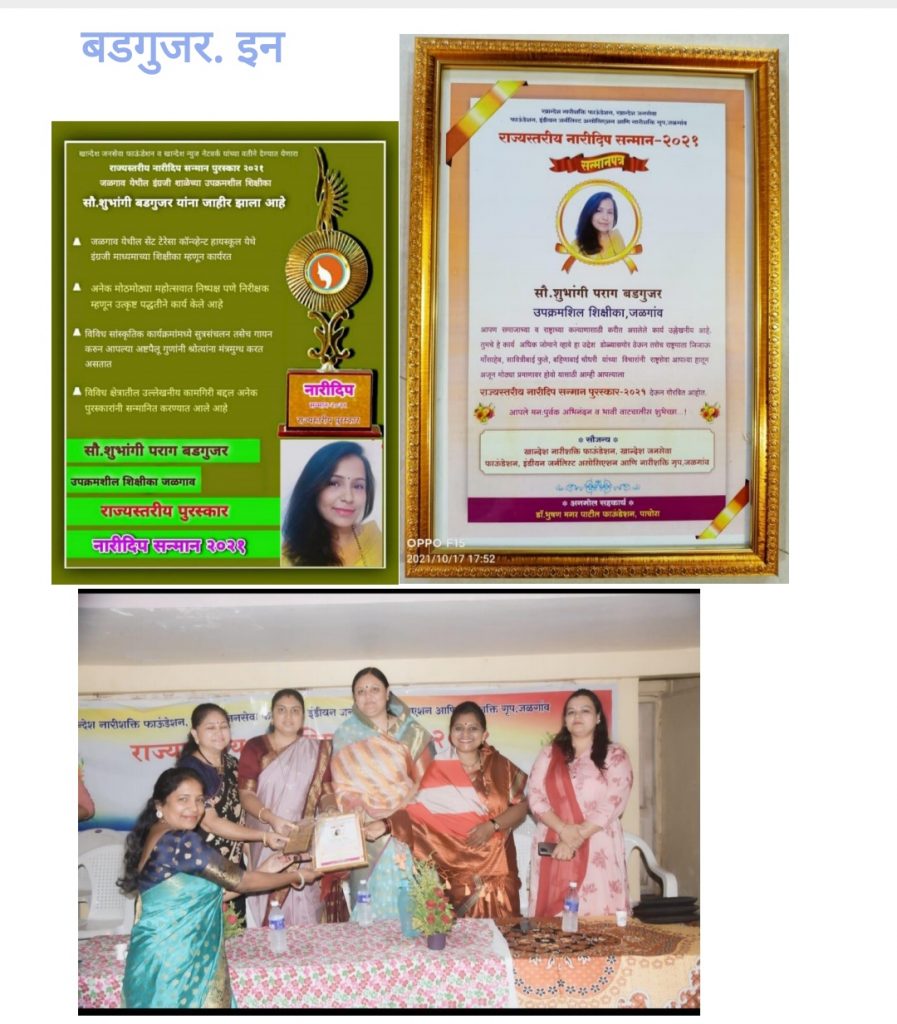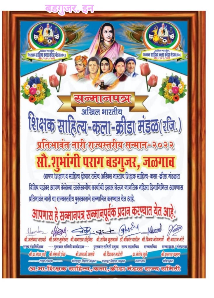 सौ. शुभांगी पराग बडगुजर – ९४२३४८७११०, ८६६८९५३७६४