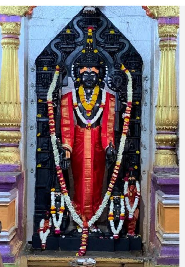 देवतेच्या शोधाची कथाही कमी वेचक नाही.१८८८ मध्ये रहिवाशी ब्रिटिश अधिकारी एक रिचर्ड टेंपल यांनी गावचे पाटील श्री. रामभाऊ भिटे पाटील यांना धरण बांधण्यासाठी नदीजवळील जमीन खोदून सपाट करण्याचे काम सुरू करण्याची सूचना केली. खोदकाम करताना मजूर मोठ्या लाकडी आयताकृती डब्यावर आदळले. ते खणून काढल्यावर त्या डब्याचा आकार पाहून ते पक्क झाले. ती १५ फूट लांब आणि अडीच फूट रुंद होती. पेटी उघडली असता चंदनाच्या सालात गुंडाळलेली एक छोटी मूर्ती आणि त्यावर काही शिलालेख असलेली तांब्याची पाटी असलेली विष्णुची उत्तम प्रकारे जतन केलेली मूर्ती आढळली. ही तारीख होती ७ डिसेंबर १८८८. हिंदू दिनदर्शिकेनुसार ती होती गार्गशीर्ष शुक्ल पंचमी, शुक्रवार, श्रवण नक्षत्र, गोरज मुहूर्त, नाग दीपावली