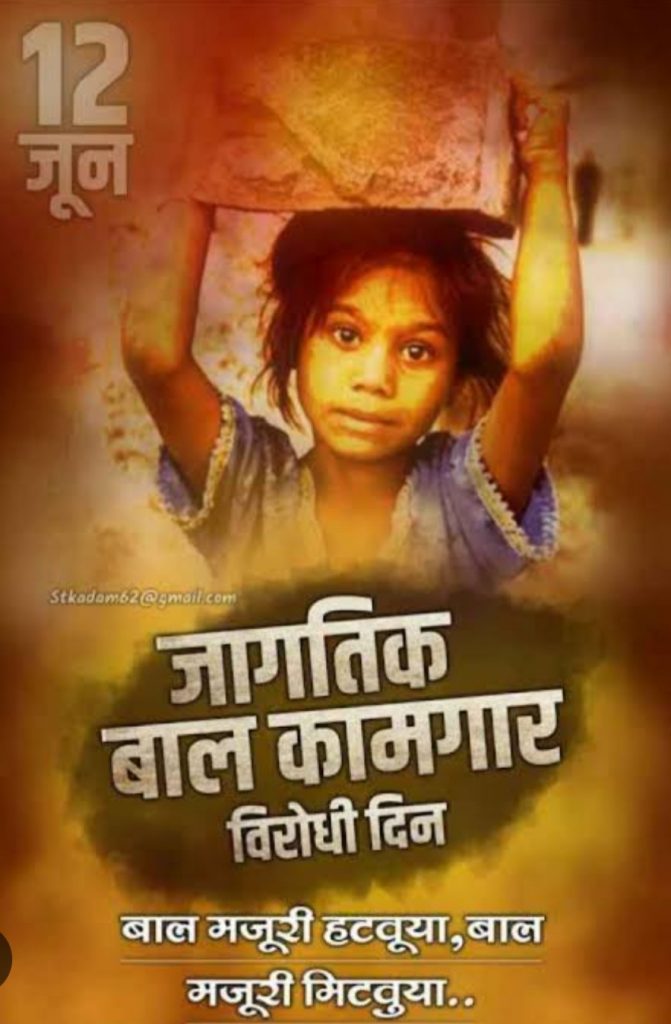 आज १२ जून:जागतिक🧖♂️🧖♀️बालकामगार विरोधी दिन माहिती.!🤷♂️🤷♀️