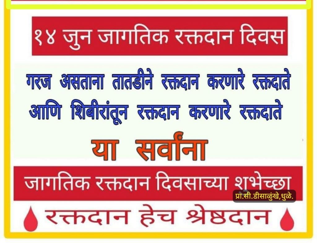 рдЬрд╛рдЧрддрд┐рдХ рд░рдХреНрддрджрд╛рди рджрд┐рдирд╛рд╕рд╛рдареАЁЯСЗрдШреЛрд╖рд╡рд╛рдХреНрдпреЗ.!