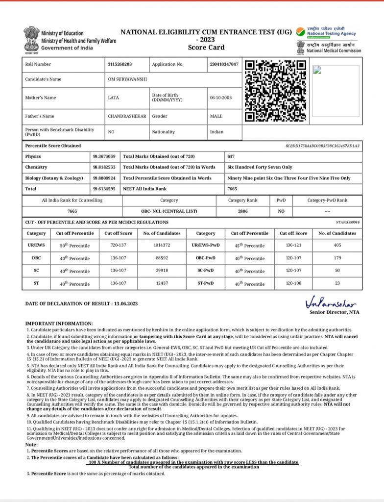 त्याची All India Rank नंबर 7665 आहे व OBC category ची 2806 rank आहे.