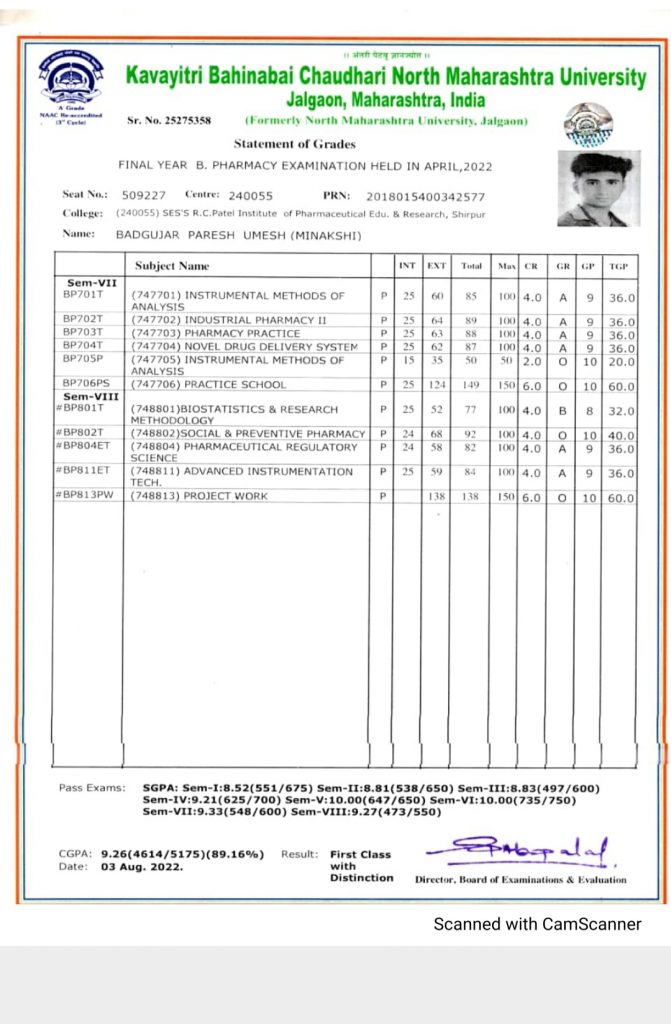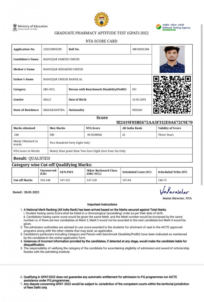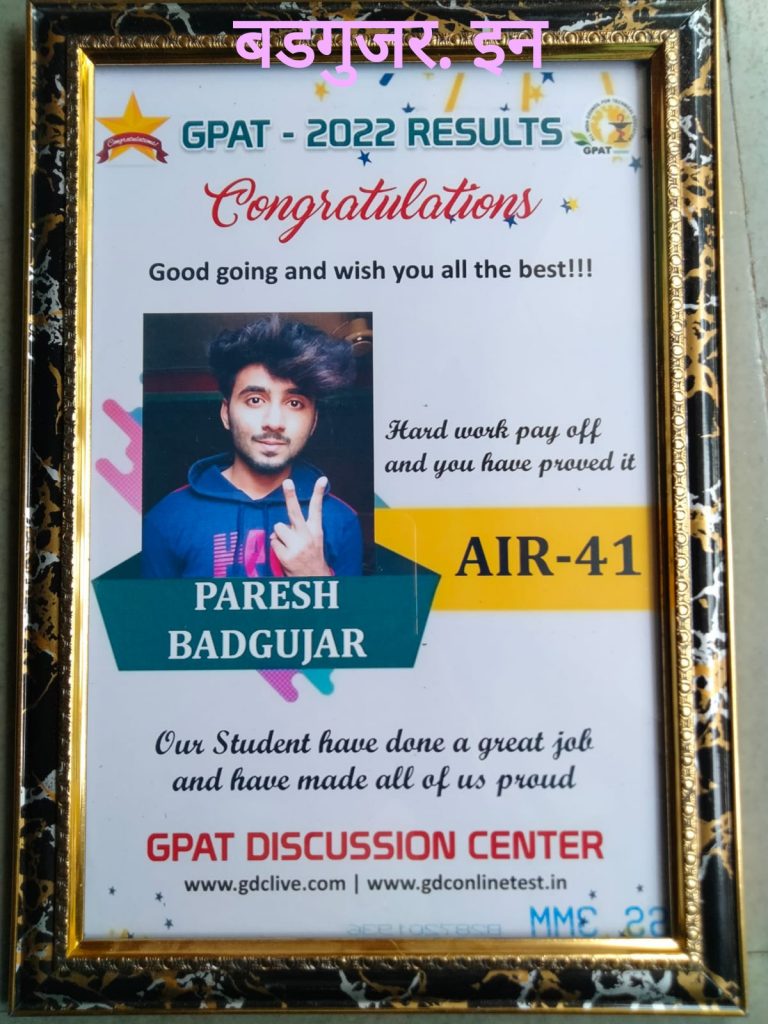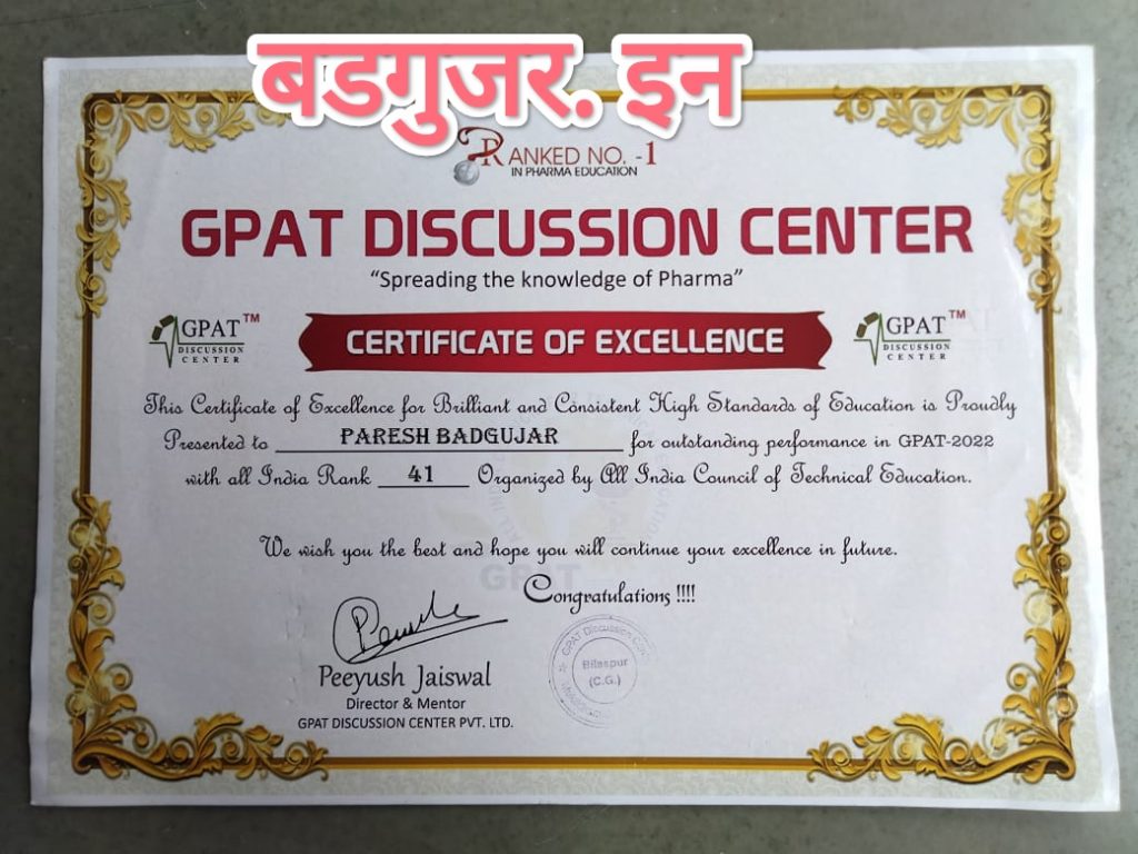 अर्थे येथील श्री. बन्सीलाल सखाराम बडगुजर, सौ. सुमनबाई बन्सीलाल बडगुजर यांचा नातू व श्री. उमेश बन्सीलाल बडगुजर, सौ. मीनाक्षी उमेश बडगुजर यांचा चिरंजीव परेश उमेश बडगुजर यांने सन २०२१ – २२ च्या जीपीएटी परीक्षेत ९९.९२, भारतात ४१ व्या नंबर मिळवून पास झाले. परेश हे ग्रामीण भागातील विद्यार्थी असून शिरपूर येथील आर. सी. पटेल फार्मसी महाविद्यालयात शिकत घेतले. आता त्याचे पुढील शिक्षणासाठी आय. आय. टी. काशी बनारस हिंदू विश्वविद्यालय येथे एम. फार्मसी शिक्षण घेत आहे त्यांना किंवा प्रत्येक विद्यार्थीना ही परीक्षा पास झाले की भारत सरकारक डून दरमहा १२,४०० रुपये स्टायपेंड मिळणार आहे. त्यामुळे त्यांचा सत्कार हा भुनेश्वर येथे करण्यात आला होता. मुंबई ते भुवनेश्वर प्रवास विमानाने केला याचा खर्च हा सत्कार आयोजित असलेल्या संस्थेने केला. शिरपूर आर.सी. पटेल कॉलेजमध्ये ही त्यांचा सत्कार करण्यात आला. त्याचे कौतुक हे अर्थे व शिरपुर पंचक्रोशीत होत असून त्याच्यावर अभिनंदनचा वर्षाव ही होत आहे. आप्तेष्ट व त्यांचे मित्र यांनीही त्याचे अभिनंदन केले. परीक्षा अत्यंत कठीण असून संपूर्ण भारत देशातून परीक्षा देऊन उत्तीर्ण होणाऱ्या विद्यार्थ्यांची संख्या अगदीच कमी प्रमाणात असते. जीपॅट परीक्षेत उत्तम गुण किंवा रँक मिळवणे म्हणजे मानाचे तसेच उच्च बुद्धिमत्तेचे प्रतीक मानले जाते. ही परीक्षा उत्तीर्ण झालेल्या सर्व विद्यार्थ्यांना एम.फार्मसी तसेच इतर मास्टर इन फार्मसी कोर्सेस शिक्षणासाठी प्रवेश मिळवण्यासाठी घेतली जाते. भारतात काही विद्यापीठ परीक्षा विद्यार्थ्यांना पीएचडीच्या शिक्षणासाठी थेट प्रवेश देत असतात.