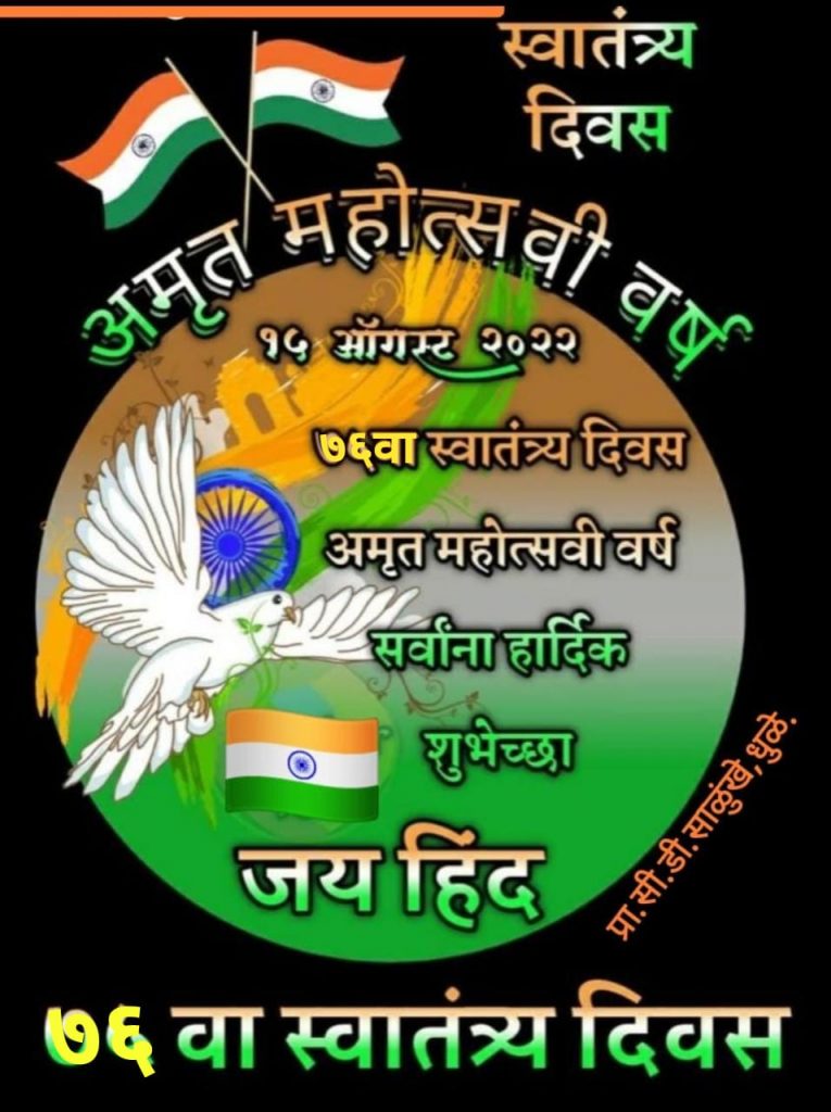 आजच्या दिवशी इंग्रजांनी भारत सोडला,आणि भारताने स्वातंत्र्याचा श्वास घेतला.१५ ऑगस्ट २०२२ रोजी, स्वातंत्र्याची ७५ वर्षे पूर्ण होत आहेत,आणि या निमित्ताने देशभर अमृत महोत्सव आनंदाने साजरा केला जात आहे,या दिवशी भारताचे पंतप्रधान लाल किल्ल्यावर राष्ट्रीय ध्वज फडकावून भाषण देतात,यासह सर्व शाळा व कार्यालयांमध्ये तिरंगा देखील फडकविला जातो.भारताच्या स्वातंत्र्याच्या ७६ वर्षांच्या स्मरणार्थ भारत सरकारने ‘आझादी का अमृत महोत्सव’