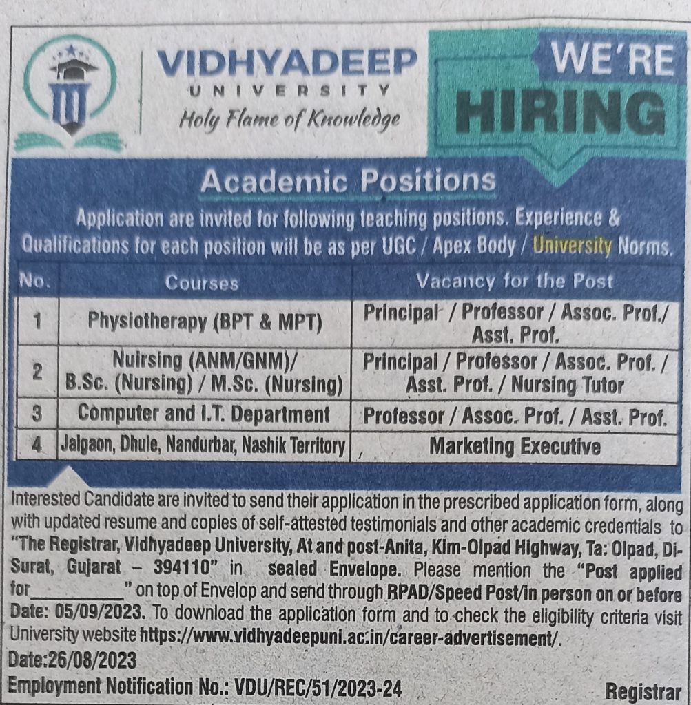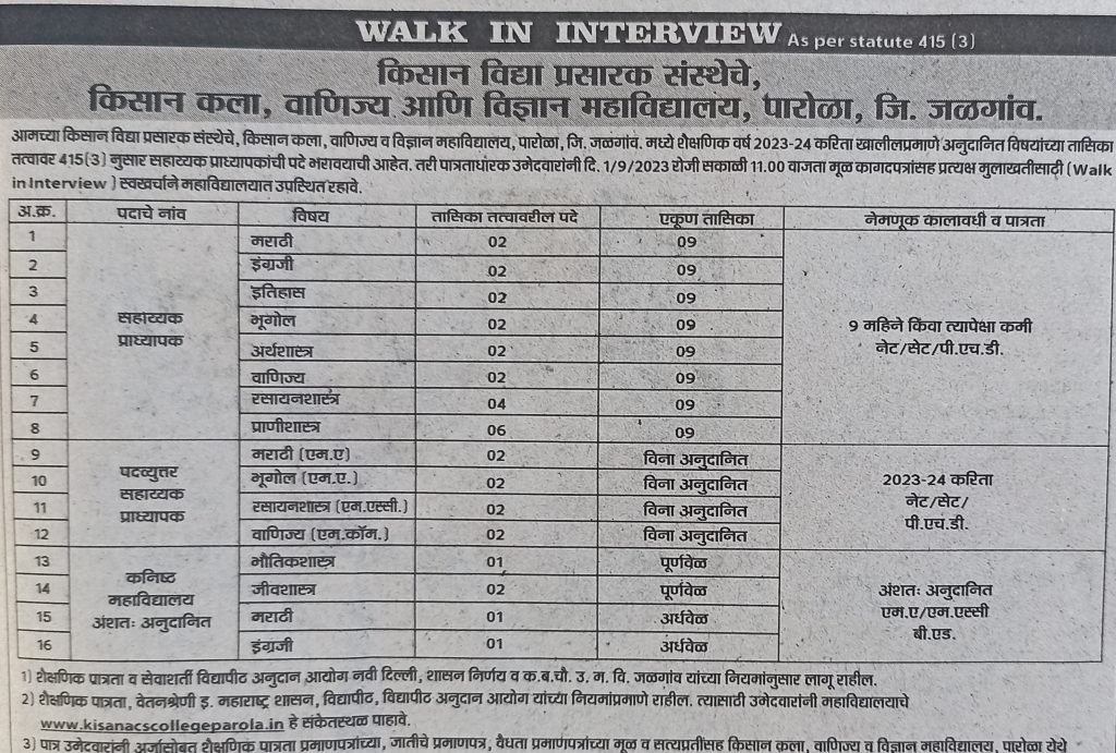 शैक्षणिक पात्रता – भारतीय विद्यापीठातील संबंधित विषयात किमान 55% गुणांसह पदव्युत्तर पदवी (समतुल्य) किंवा मान्यताप्राप्त परदेशी विद्यापीठामधून समतुल्य पदवी, पीएच.डी. पदवी