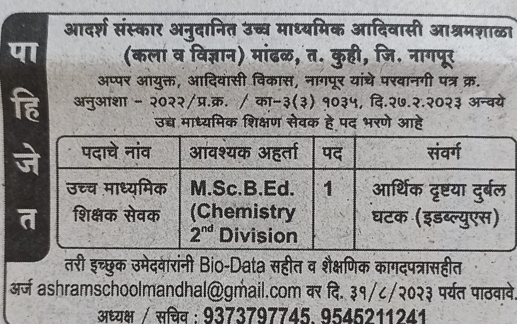 नोकरी ठिकाण : नागपूर (महाराष्ट्र)