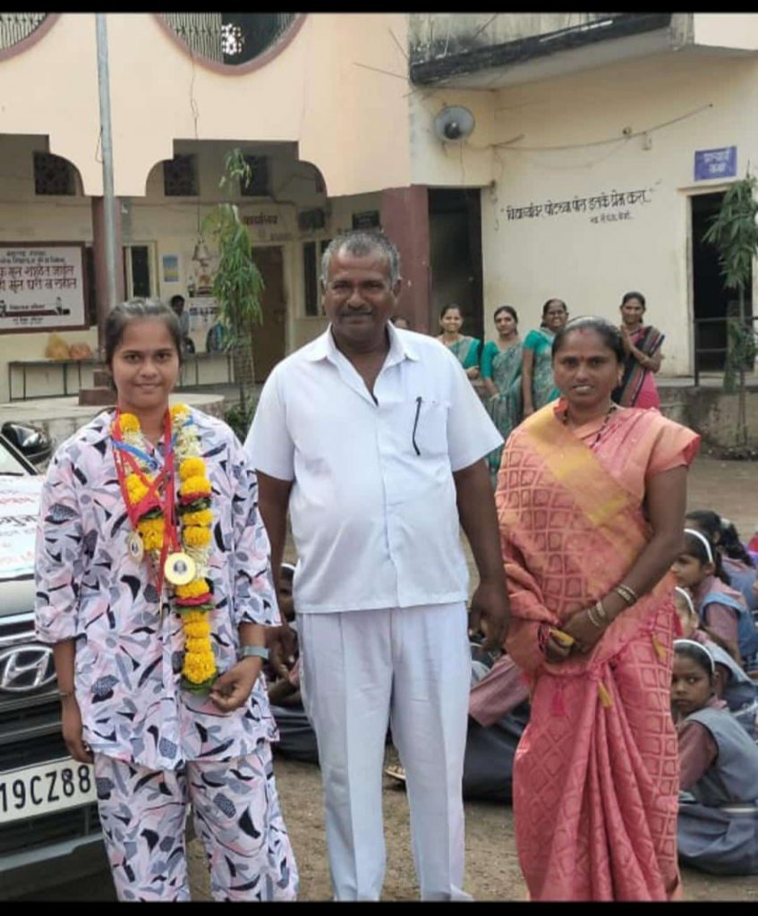 माहिजी ता.पाचोरा येथील श्री. नामदेव पुना बडगुजर यांची कन्या तेजस्वीनी नामदेव बडगुजर यांनी सन २०२३-२४ मध्ये जिल्हास्तरीय स्पर्धेमध्ये (जळगांव, चाळीसगांव, नाशिक ) येथे “गोल्ड पदक” व राज्यस्तरीय कुस्ती स्पर्धेमध्ये “सिल्व्हर पदक” पटकावले. आमदार श्री. किशोर आप्पा पाटील यांच्या कडुन ही त्यांचा विशेष सत्कार ही करण्यात आला. कु. तेजस्वीनी नामदेव बडगुजर यांच्या यशाबद्दल त्यांचे मित्र परिवार व सर्व पैलवान मंडळी, अखिल भारतीय युवक समिती, बडगुजर. इन, प्राऊड ग्रुप, बडगुजर युवा संगठन सुरत, 👣जय चांमुडा माता हिरकणी ग्रुप👣यांच्या कडून हार्दिक अभिनंदन व भावी वाटचालीस शुभेच्छा!