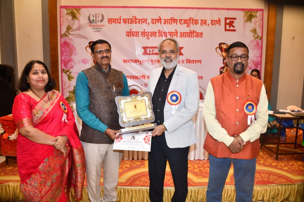 समर्थ फाऊंडेशन आणि एज्यूरिक हब ठाणे यांच्या संयुक्त विद्यमाने आयोजित “राज्यस्तरीय समाजभूषण ” पुरस्कार प्रदान सोहळा रविवार दिनांक १ डिसेंबर २०२४ रविवार, सकाळी १० वाजता, चौथा मजला, तृप्ती बँक्वेट (ग्लोरिया हॉल), एम.एच. हायस्कूल, तलावपाळी जवळ ,ठाणे पश्चिम येथे पार पडला.