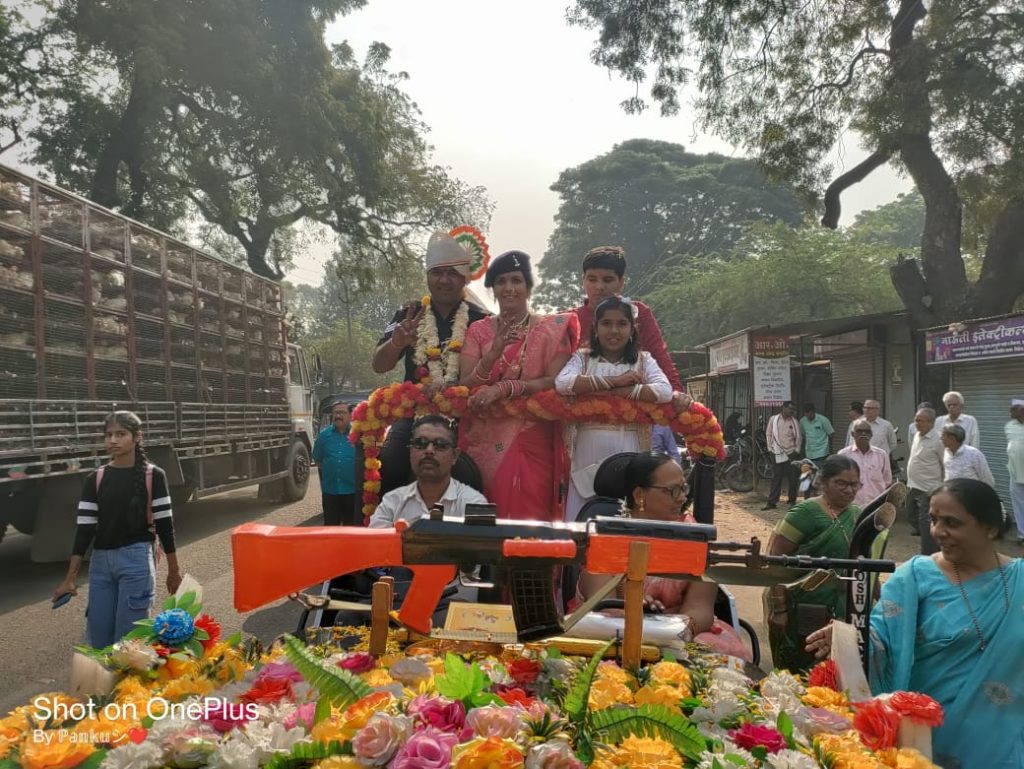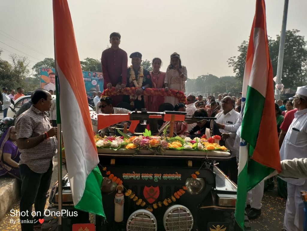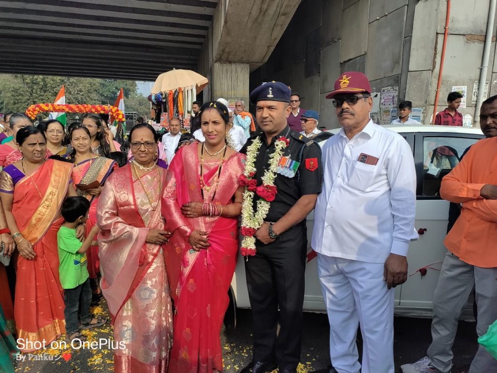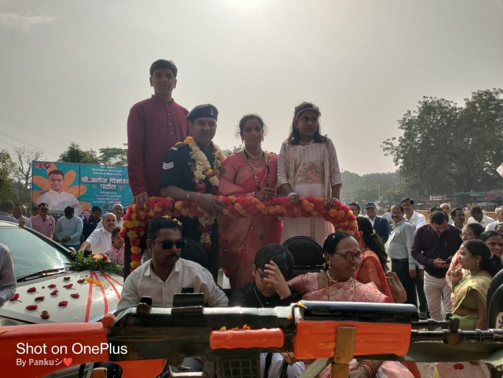 तर दोन डिसेंबर सोमवार रोजी धरणगाव नाक्यापासून त्यांच्या घरापर्यंत मोठी मिरवणूक काढण्यात आली ,रस्त्या रस्त्याने रांगोळ्या काढण्यात आलेले होत्या,फुलांचा वर्षाव करण्यात आला होता ,ओपन जिप गाडीला भारतीय ध्वज तिरंगा व फुल मालांनी सजविले होते यात एरंडोल मधील बडगुजर समाजातील प्रतिष्ठित मंडळी, नातेवाईक, मित्र परिवार, देश सेवेसाठी वाहून घेतलेले देशभक्त, माजी सैनिक या सर्वांनी हिरीरीने भाग घेतला. देशभक्तीमय अशा वातावरणात सदर मिरवणूक पार पडली. रस्त्या रस्त्याने त्यांचा सत्कार करत औक्षण करत त्यांच्या घरी त्यांचे स्वागत करण्यात आले.