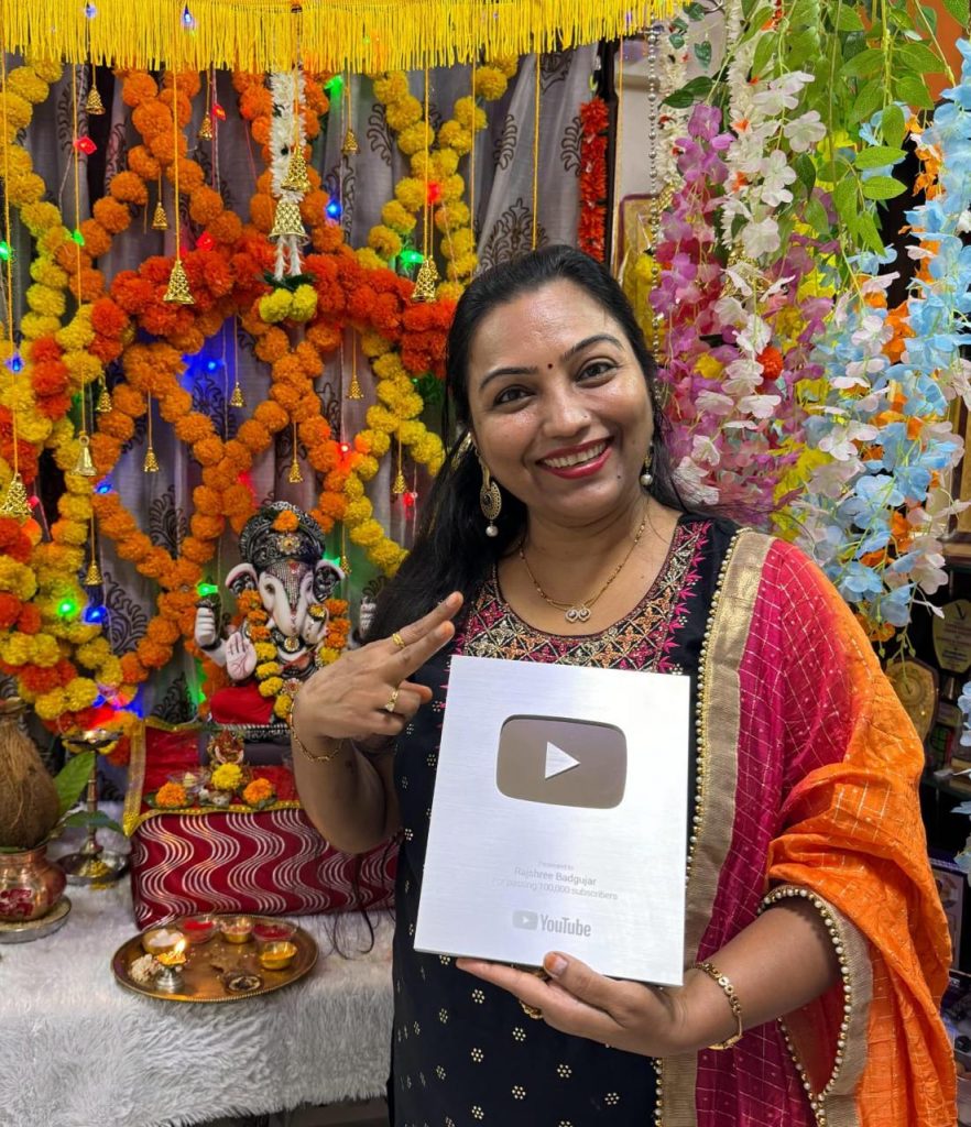 युट्युब चे सिल्वर प्ले बटन(Silver Play Button ▶️) हा सन्मान मिळवणाऱ्या आपल्या समाजातील राजश्रीताई ह्या एकमेव युट्युब वर आहेत.